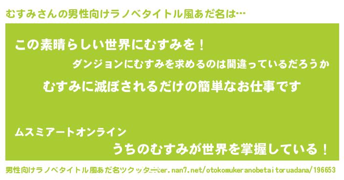 | 意味不明あだ名 | 『住所不定無職むすみ(56歳)』 |
