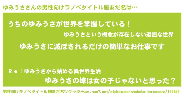 | ヒーロー風カッコイイあだ名 | 『幻影騎士ユミ』『ネオユミウサ』 |