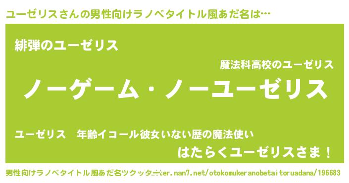 | ヒーロー風カッコイイあだ名 | 『慈愛の使者ユーゼリス』『暗黒騎士ユー』 |