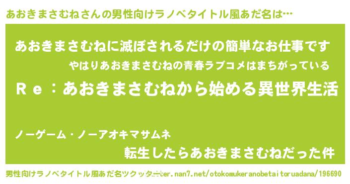 | 肩書あだ名 | 『あおきまさむね総統』 |