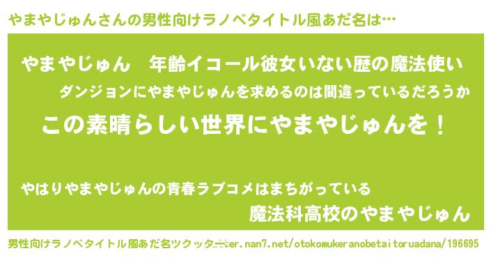 | 胡散臭い通販商品みたいなあだ名 | 『あなたにだけ特別に提供する限定10本のレアな日本酒…その名も「やまやじゅん」』 |