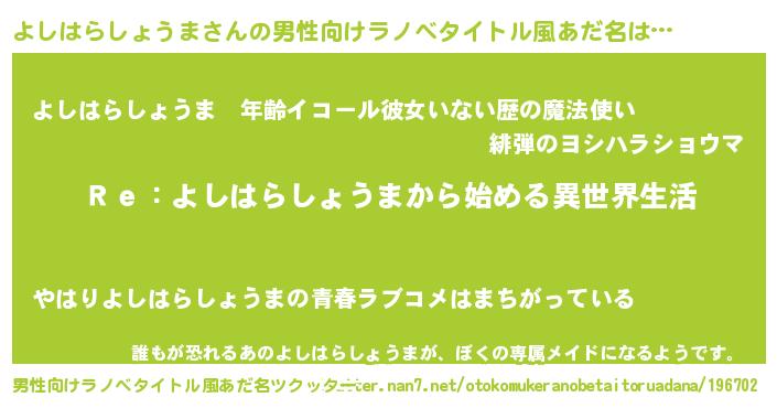 | 意味不明あだ名 | 『自称よしはらしょうま』 |
