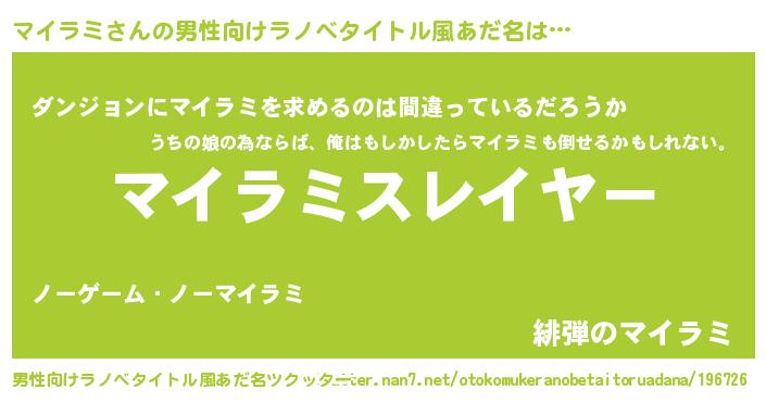 | 胡散臭い通販商品みたいなあだ名 | 『信頼と実績のペンダント…その名も「マイラミ」』 |