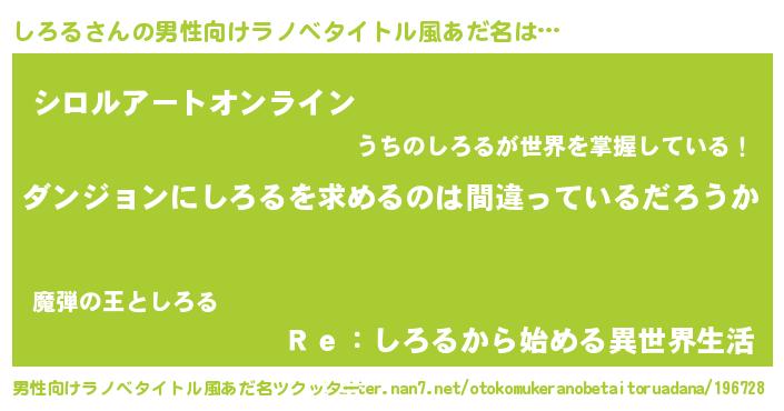 | 胡散臭い通販商品みたいなあだ名 | 『信頼と実績のサプリメント…その名も「しろる」』 |