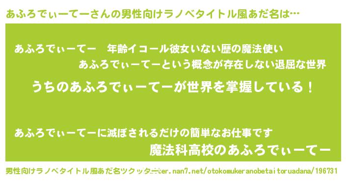 | 伝説のあだ名 | 『古文書に記された勇者あふろでぃーてー』 |