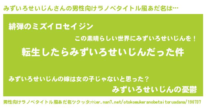 | 女子向けラノベタイトル風あだ名 | 『みずいろせいじんの玉の輿計画!』 |