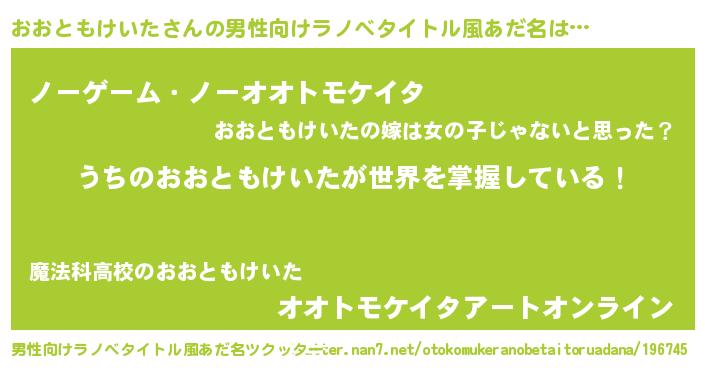 | 女子向けラノベタイトル風あだ名 | 『男装おおともけいたの憂鬱な任務』 |