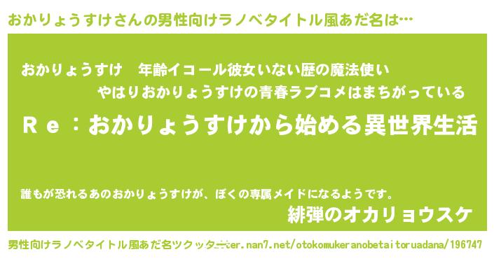 | 意味不明あだ名 | 『自称おかりょうすけ』 |