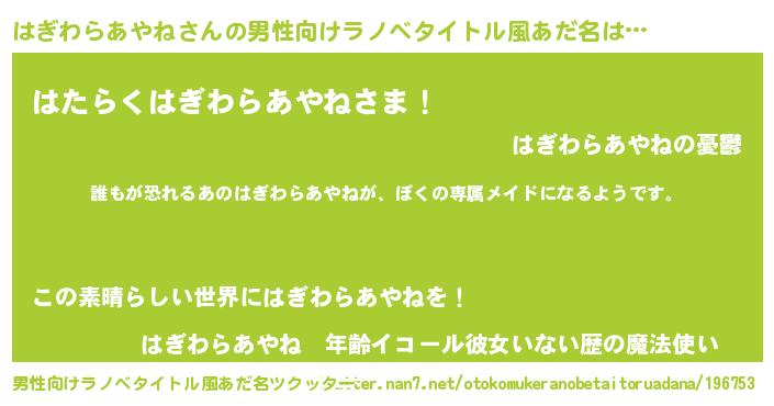 | 女子向けラノベタイトル風あだ名 | 『異世界でカフェはぎわらあやねを開店しました。』 |
