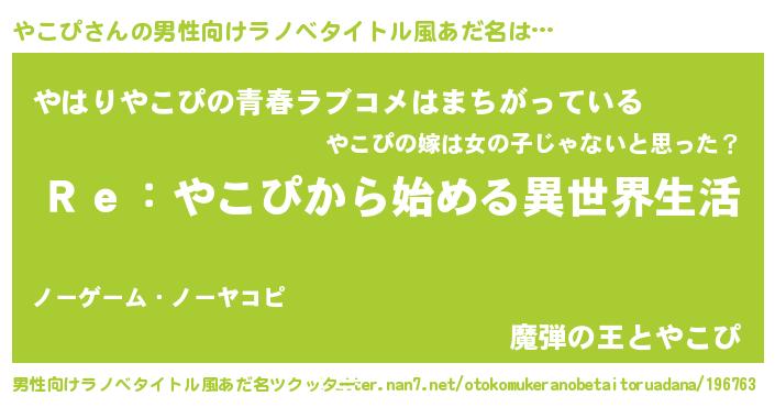 | 女子向けラノベタイトル風あだ名 | 『やこぴストレイドッグス』 |
