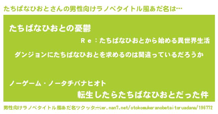 | ポケモン風あだ名 | 『ヒタチバナヒオト』『タチチュウ』 |