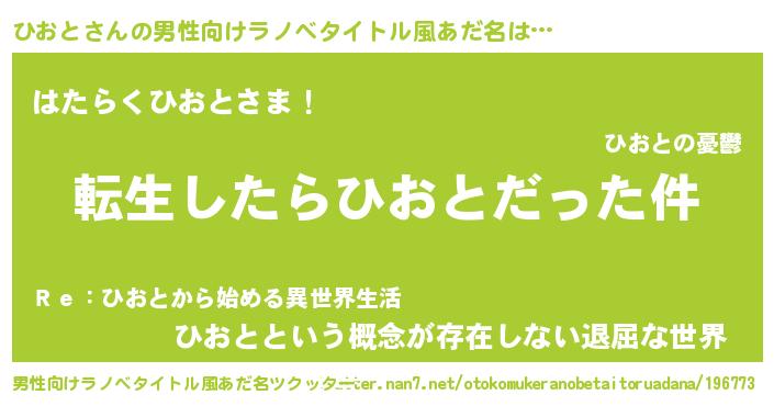 | 伝説のあだ名 | 『古より伝わる吟遊詩人ひおと』 |