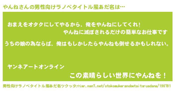 | 女子向けラノベタイトル風あだ名 | 『やんねの婚約者』 |