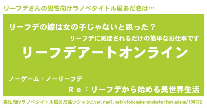 | ツイッター | リーフデさんのツイッターID『namakemono_nyan』 |