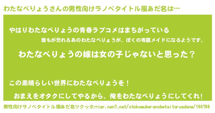 | ヘコむあだ名 | 『わたぷりん』『牛乳』『わたにゅー』 |