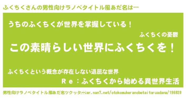 | ヘコむあだ名 | 『ふくふぇ~』『ふくちく(遠い目)』 |
