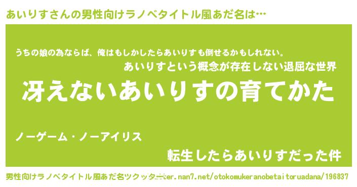 | 胡散臭い通販商品みたいなあだ名 | 『世界が平和になる高級そうな絵画…その名も「あいりす」』 |