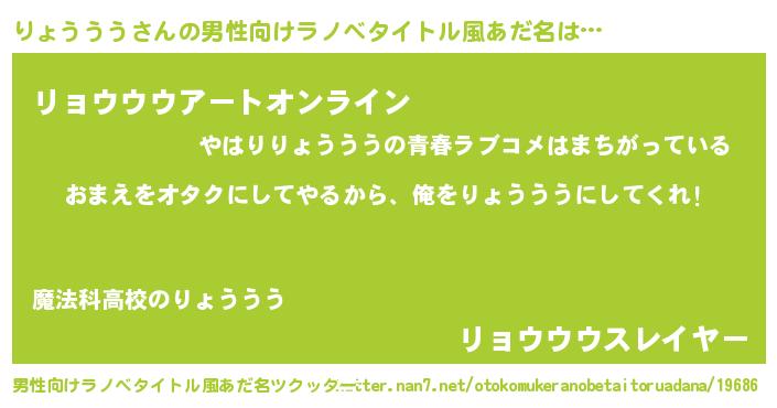 | 女子向けラノベタイトル風あだ名 | 『りょううう夫妻のなれそめ』 |
