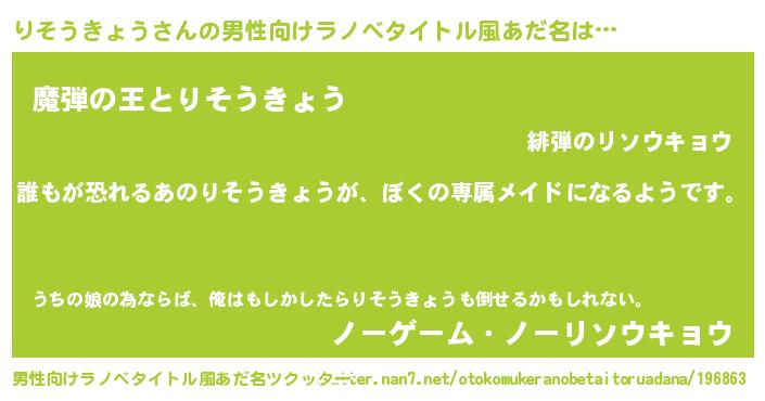 | ヒーロー風カッコイイあだ名 | 『ネオリソウキョウ』『仮面リソダー』 |
