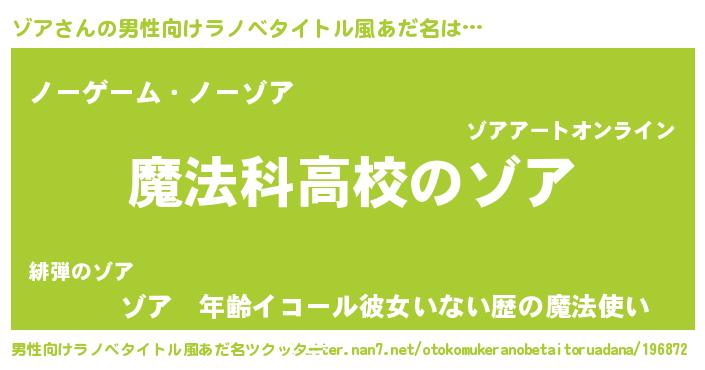 | ヘコむあだ名 | 『ゾアにゅー』『ゾアを』『酢こんぶ』 |