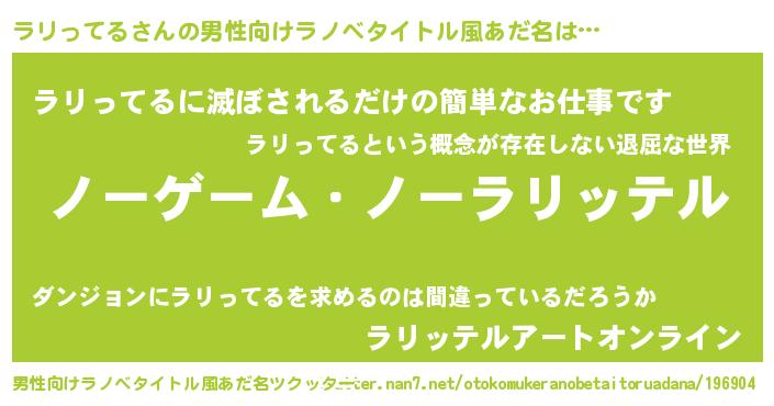 | ヒーロー風カッコイイあだ名 | 『天空の使者ラリってる』『暗黒騎士ラリ』 |