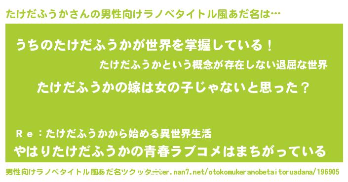 | 肩書あだ名 | 『たけだふうか塾長』『たけだふうか機長』 |