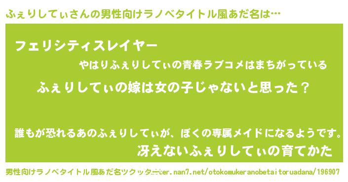 | 女子向けラノベタイトル風あだ名 | 『ふぇりしてぃ様がみてる』 |