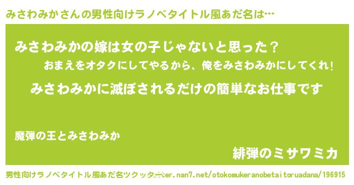 | 胡散臭い通販商品みたいなあだ名 | 『全米が絶賛したサプリメント…その名も「みさわみか」』 |