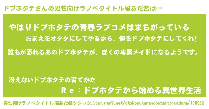 | ファンタジー風あだ名 | 『ドブディッシュ』『ゼドブトゥ』 |