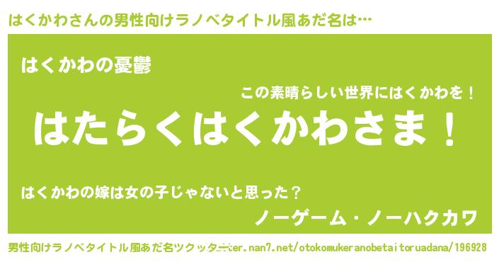 | ヘコむあだ名 | 『はくにー』『はくっ子』『なまこ酢』 |