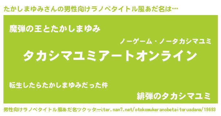 | 女子向けラノベタイトル風あだ名 | 『たかしまゆみ姫と円卓の騎士』 |