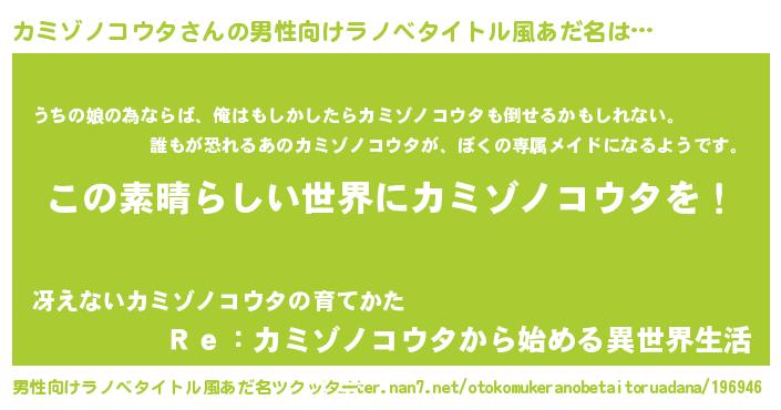 | 意味不明あだ名 | 『住所不定無職カミゾノコウタ(4歳)』 |