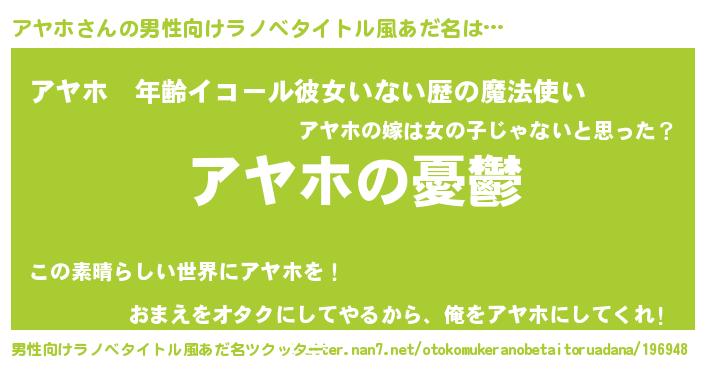 | ピコ太郎風あだ名 | 『アコ二郎』『アア太郎』『アヤ六郎』 |