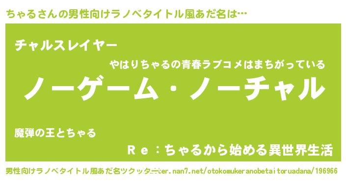 | 女子向けラノベタイトル風あだ名 | 『ちゃる恋絵巻』『闇のちゃる』 |