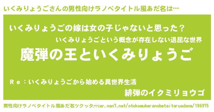 | 女子向けラノベタイトル風あだ名 | 『いくみりょうごが死なない童話 林檎のいくみりょうごの診療簿』 |