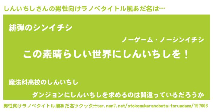 | 胡散臭い通販商品みたいなあだ名 | 『あなたにだけ特別に提供する100年もののヴィンテージワイン…その名も「しんいちし」』 |