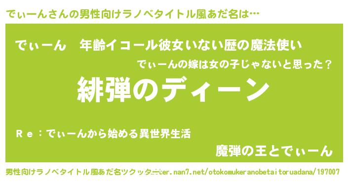 | ヒーロー風カッコイイあだ名 | 『仮面ディダー』『炎刃騎士ディ』 |