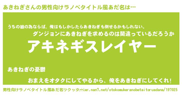 あきねぎさんの男性向けラノベタイトル風あだ名をツクッター!