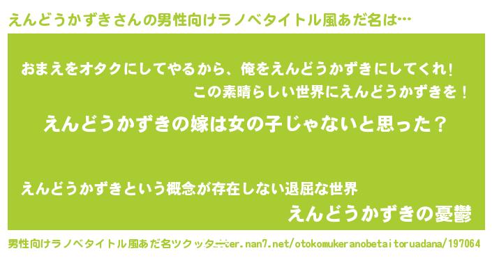 | 胡散臭い通販商品みたいなあだ名 | 『全米が絶賛したサプリメント…その名も「えんどうかずき」』 |
