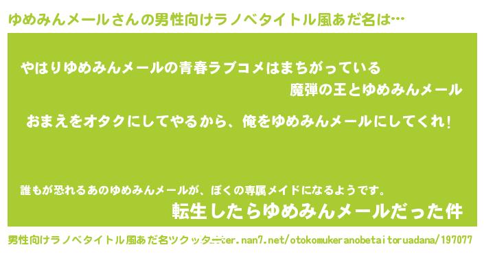 | 女子向けラノベタイトル風あだ名 | 『ゆめみんメール恋絵巻』 |