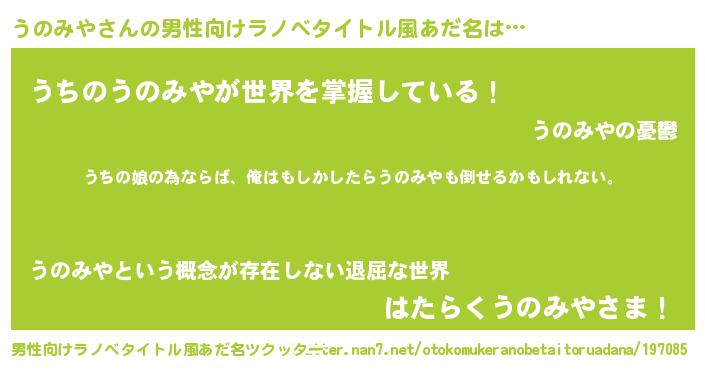 | 胡散臭い通販商品みたいなあだ名 | 『運命の人と巡り会える高級そうな絵画…その名も「うのみや」』 |