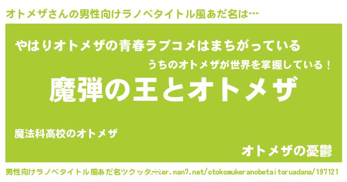 | 意味不明あだ名 | 『住所不定無職オトメザ(89歳)』 |