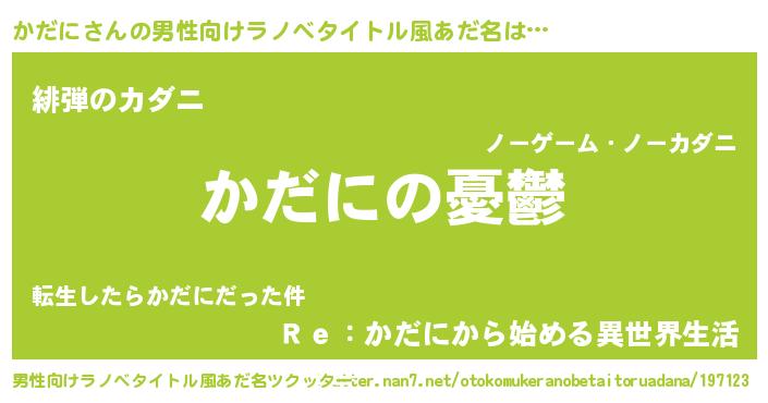 | 胡散臭い通販商品みたいなあだ名 | 『モテモテ間違いなし霊験あらたかなお札…その名も「かだに」』 |
