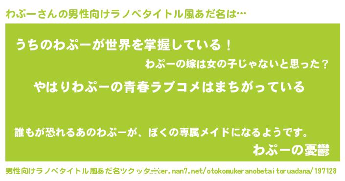 | ヒーロー風カッコイイあだ名 | 『ウルトラわぷーマン』『スーパーワプー』 |