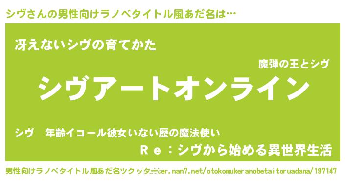 | ヘコむあだ名 | 『シヴにー』『なまこ酢』『シヴを』 |