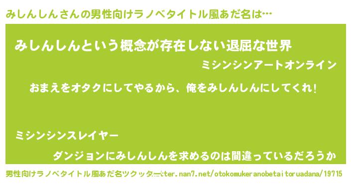 | 女子向けラノベタイトル風あだ名 | 『みしんしん恋絵巻』 |