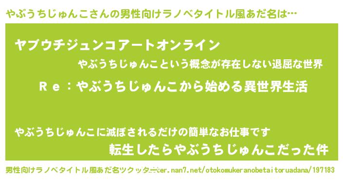 やぶうちじゅんこさんの男性向けラノベタイトル風あだ名をツクッター!
