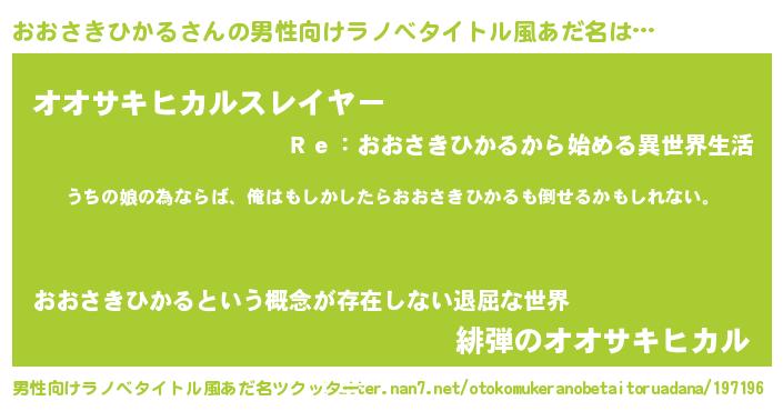 | 女子向けラノベタイトル風あだ名 | 『おおさきひかる伯爵の花嫁』 |