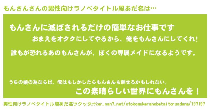 | 意味不明あだ名 | 『永久保存もんさん』『自称もんさん』 |