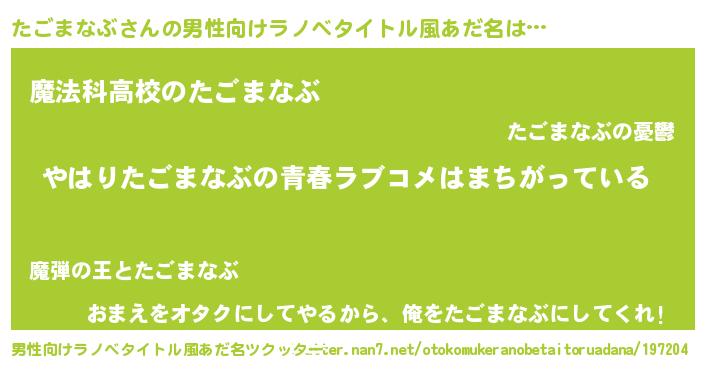 | 女子向けラノベタイトル風あだ名 | 『たごまなぶ伯爵の花嫁』 |